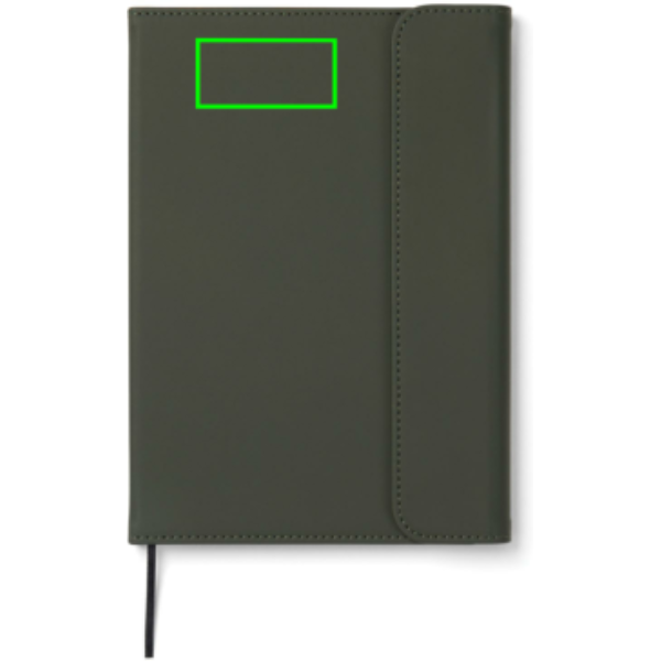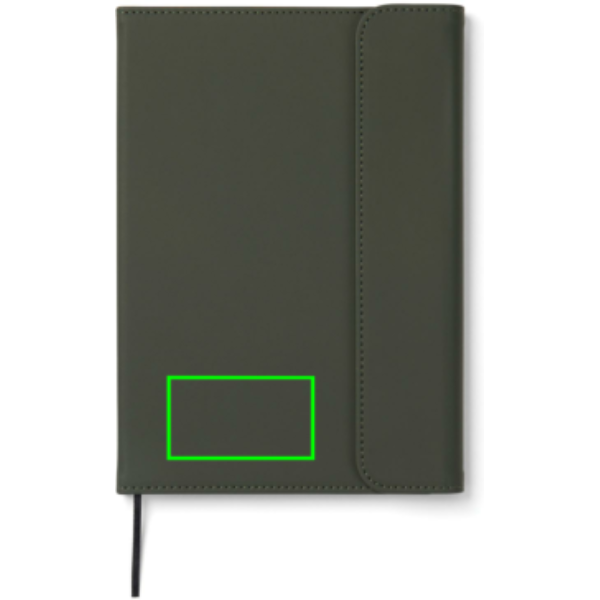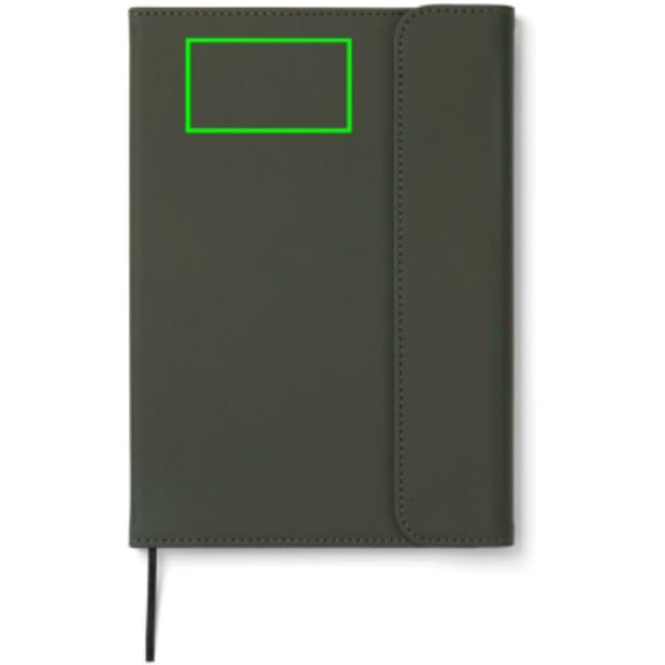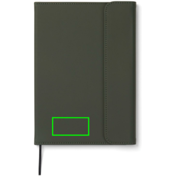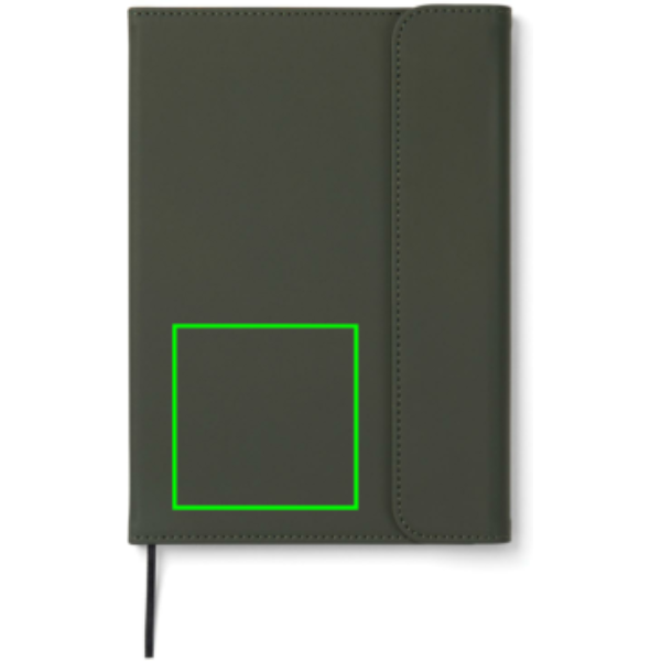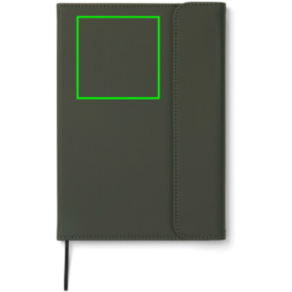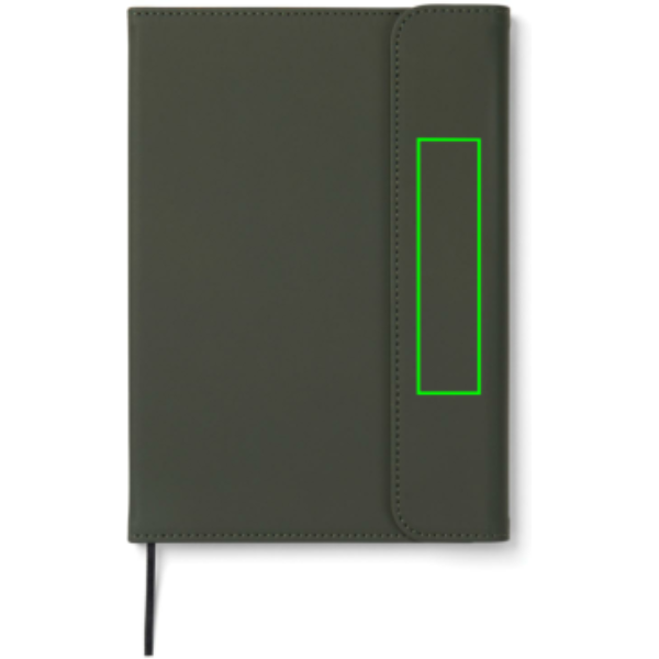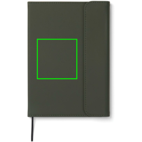 Elegant A5 notitieboek met een moderne uitstraling. De omslag, gemaakt van 30% gerecycled mat PU, heeft een magnetische sluiting en een geïntegreerde penhouder. Gevuld met 80 pagina's/160 vellen 70 grams gelinieerd gerecycled papier, geschikt voor al je notities. Het binnenwerk kan worden vervangen, zodat je de omslag kunt blijven gebruiken. Gecertificeerd door GRS (Global Recycled Standard), deze certificering garandeert dat de hele toeleveringsketen van de gerecyclede materialen gewaarborgd is. Het totale gerecyclede gehalte is gebaseerd op het totale productgewicht. Total recycled content: 59% based on total item weight. Certified by Control Union, CU1162221.