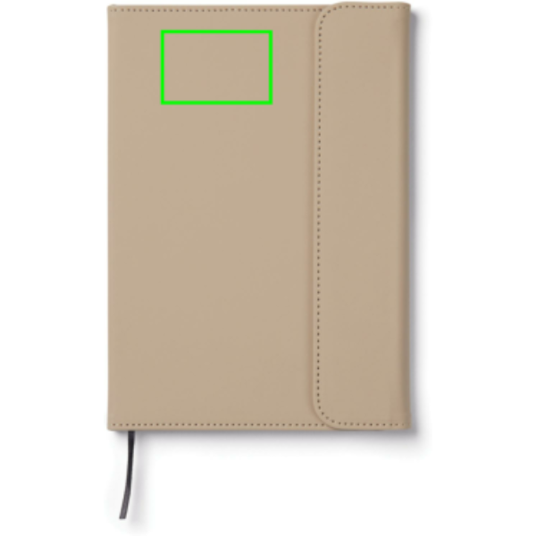 Elegant A5 notitieboek met een moderne uitstraling. De omslag, gemaakt van 30% gerecycled mat PU, heeft een magnetische sluiting en een geïntegreerde penhouder. Gevuld met 80 pagina's/160 vellen 70 grams gelinieerd gerecycled papier, geschikt voor al je notities. Het binnenwerk kan worden vervangen, zodat je de omslag kunt blijven gebruiken. Gecertificeerd door GRS (Global Recycled Standard), deze certificering garandeert dat de hele toeleveringsketen van de gerecyclede materialen gewaarborgd is. Het totale gerecyclede gehalte is gebaseerd op het totale productgewicht. Total recycled content: 59% based on total item weight. Certified by Control Union, CU1162221.