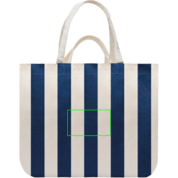 Neem al uw spullen mee in deze ruime strandtas. Deze tas heeft zowel schouderbanden als kortere handvatten, waardoor u hem gemakkelijk overal mee naartoe kunt nemen. Ontworpen met een klassiek tweekleurig streepmotief in 390 GSM canvas. Gecertificeerd door GRS (Global Recycled Standard). De GRS-certificering garandeert dat de hele toeleveringsketen van de gerecyclede materialen gecertificeerd is. Het totale gerecyclede gehalte is gebaseerd op het totale productgewicht. Dit product bevat 69% GRS-gecertificeerd gerecycled katoen en 29% GRS-gecertificeerd gerecycled polyester.