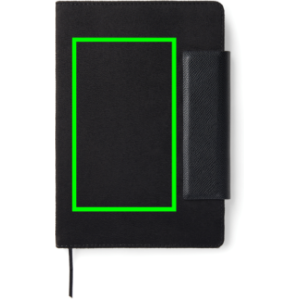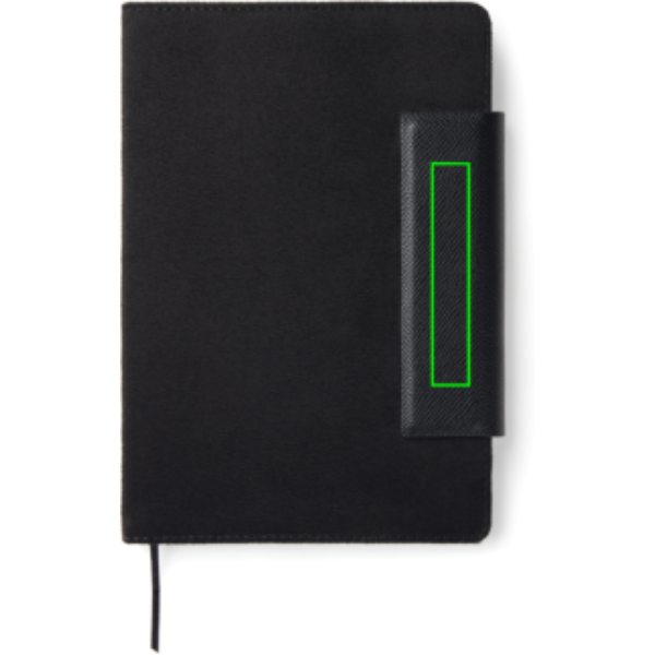 A stylish A5 notebook consisting of 160 lined pages (80 sheets). It is the perfect accessory to bring to meetings, keeping your notes organized in style. Marlow notebook combines timeless design with recycled faux leather, PU details and recycled paper. The notebook is equipped with a practical and stylish magnetic closure. This item is made using 50% GRS certified recycled paper and 6% GRS certified recycled polyester. GRS (Global Recycled Standard) is a standard to verify the recycled content of a product throughout the whole supply chain. Total recycled content: 56% based on total item weight. Certified by Control Union, CU1162221.
